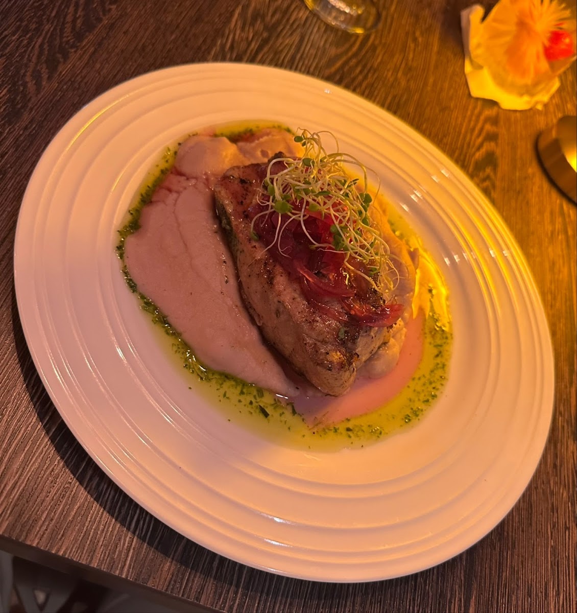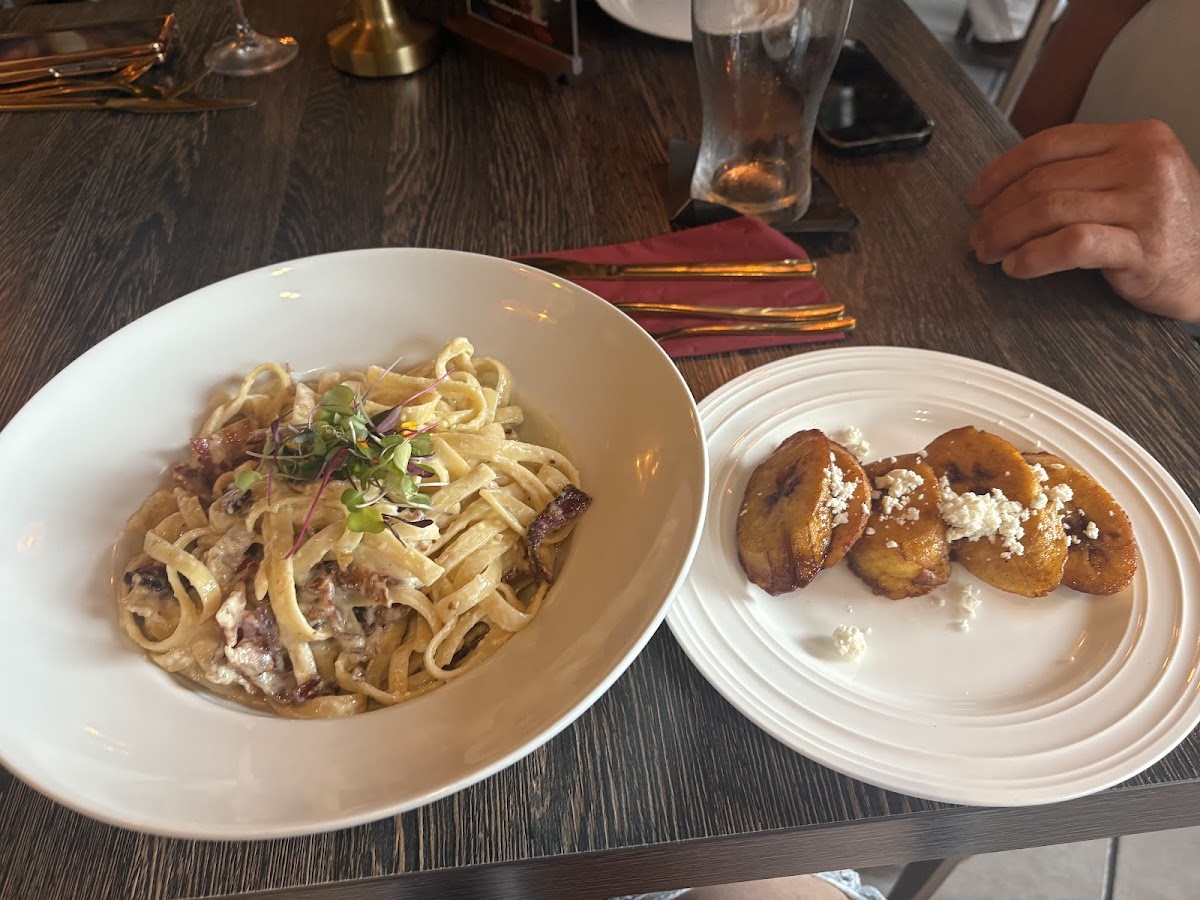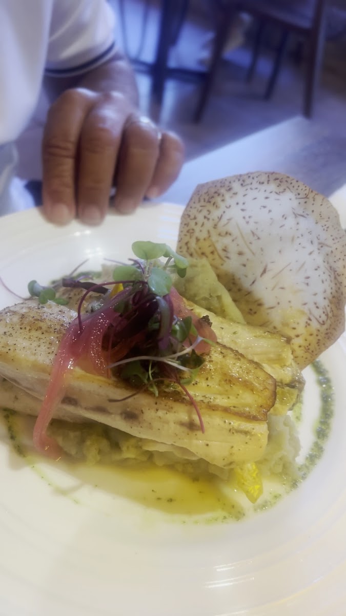 From start to finish, our dining experience at Piatto was nothing short of spectacular. Every dish we tried was expertly crafted and bursting with flavor. We began with an appetizer of bao buns stuffed with tender, flavorful pork—an excellent start to the meal. For our main courses, we enjoyed the salmon with pumpkin and bacon risotto, as well as the dorado served with pigeon pea risotto. Both dishes were perfectly cooked, beautifully presented, and absolutely delicious. On the side, we had fried plantains and sweet plantains with feta cheese—both were outstanding and complemented our meal wonderfully. To finish, we had the pear dessert, which was just as impressive as everything else. The drinks were equally remarkable. The espresso martini was rich and smooth, while the tamarind margarita was the perfect balance of sweet and tangy. Beyond the food, the entire experience was flawless. The atmosphere was warm and inviting, the service was attentive and friendly, and the décor was stylish yet comfortable. The location was perfect, and even the music added to the overall ambiance. A true five-star experience—highly recommended!